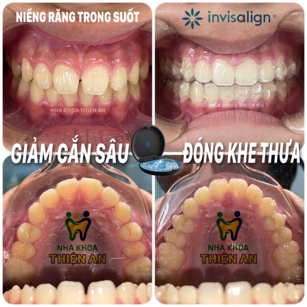 Khớp cắn sâu là một trong những tình trạng sai khớp cắn rất nghiêm trọng, gây ra nhiều vấn đề cả về mặt thẩm mỹ và khả năng ăn nhai. Điều trị khớp cắn sâu với kết quả như mong muốn là một quá trình điều trị không dễ về mặt lâm sàng ngay cả với niềng răng mắc cài. Tuy nhiên, với niềng răng trong suốt Invisalign việc điều trị cắn sâu, cắn hở lại trở nên dễ dàng, nhẹ nhàng hơn