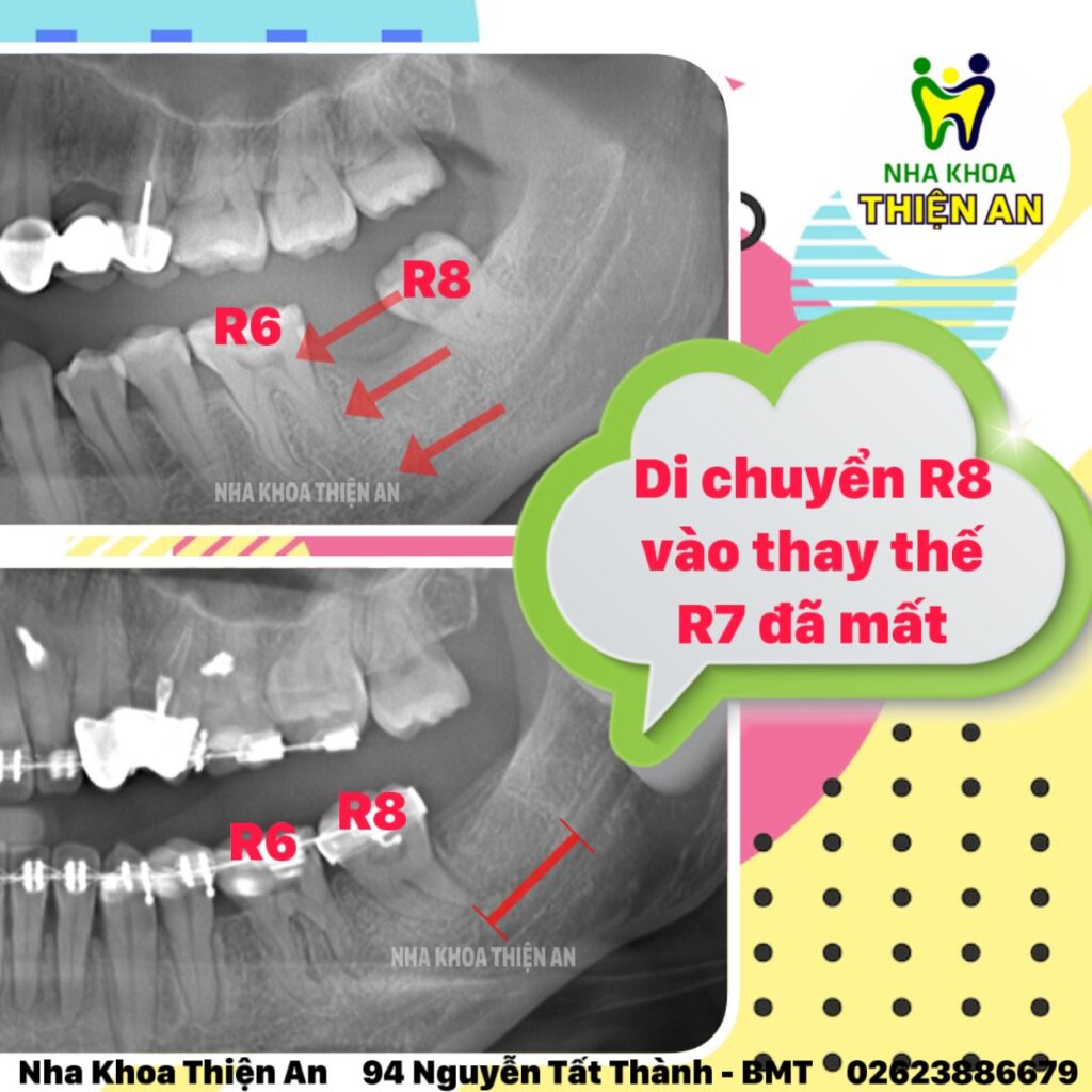 Tiết kiệm 1 cái implant cho cô gái dễ thương, với khoảng dịch chuyển rất dài, nhưng bs tại nha khoa Thiện An BMT – Đăk Lăk vẫn dịch chuyển đưa em răng khôn về đến bến bờ mới cực nuột